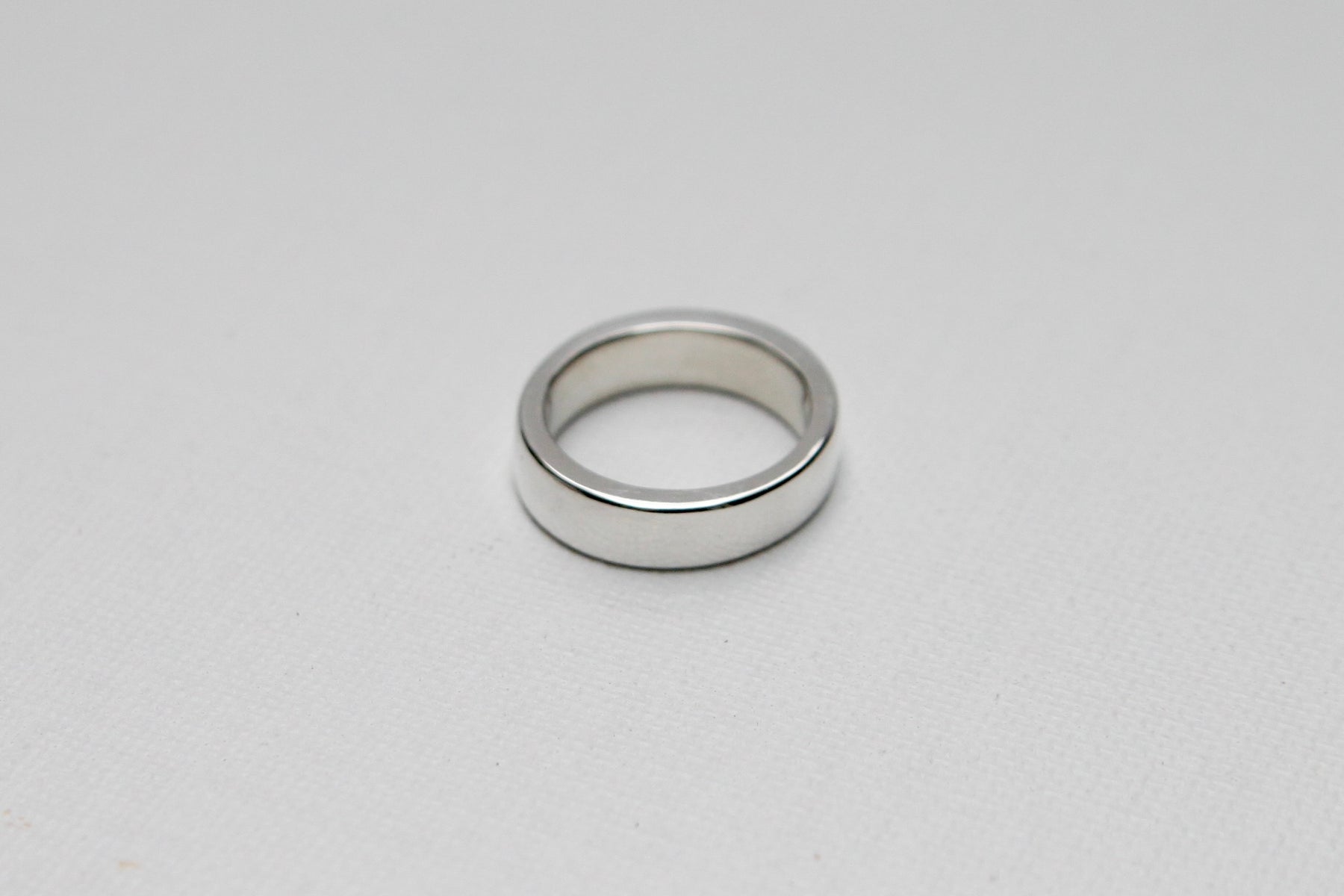 A contemporary straight edge design the Revel ring is a solid weighty band.
