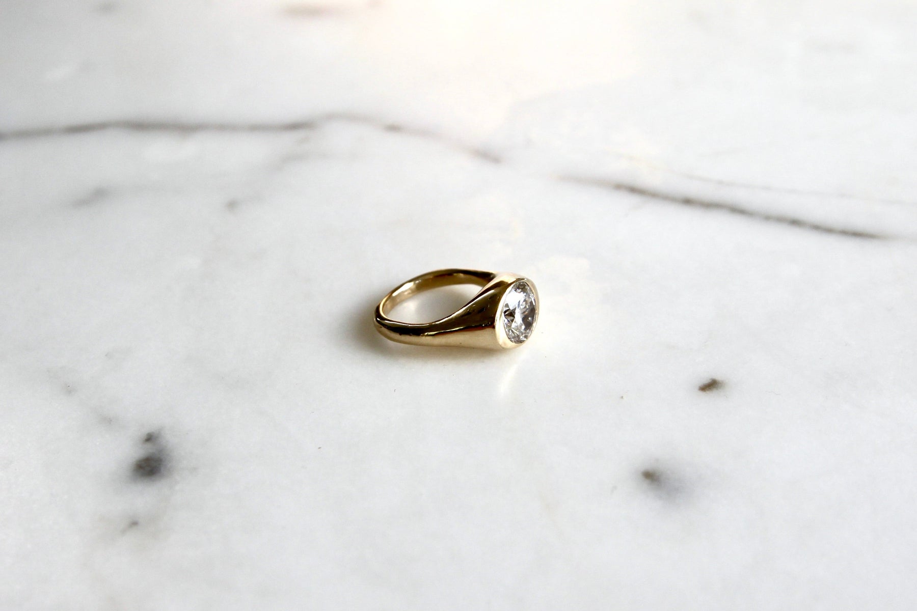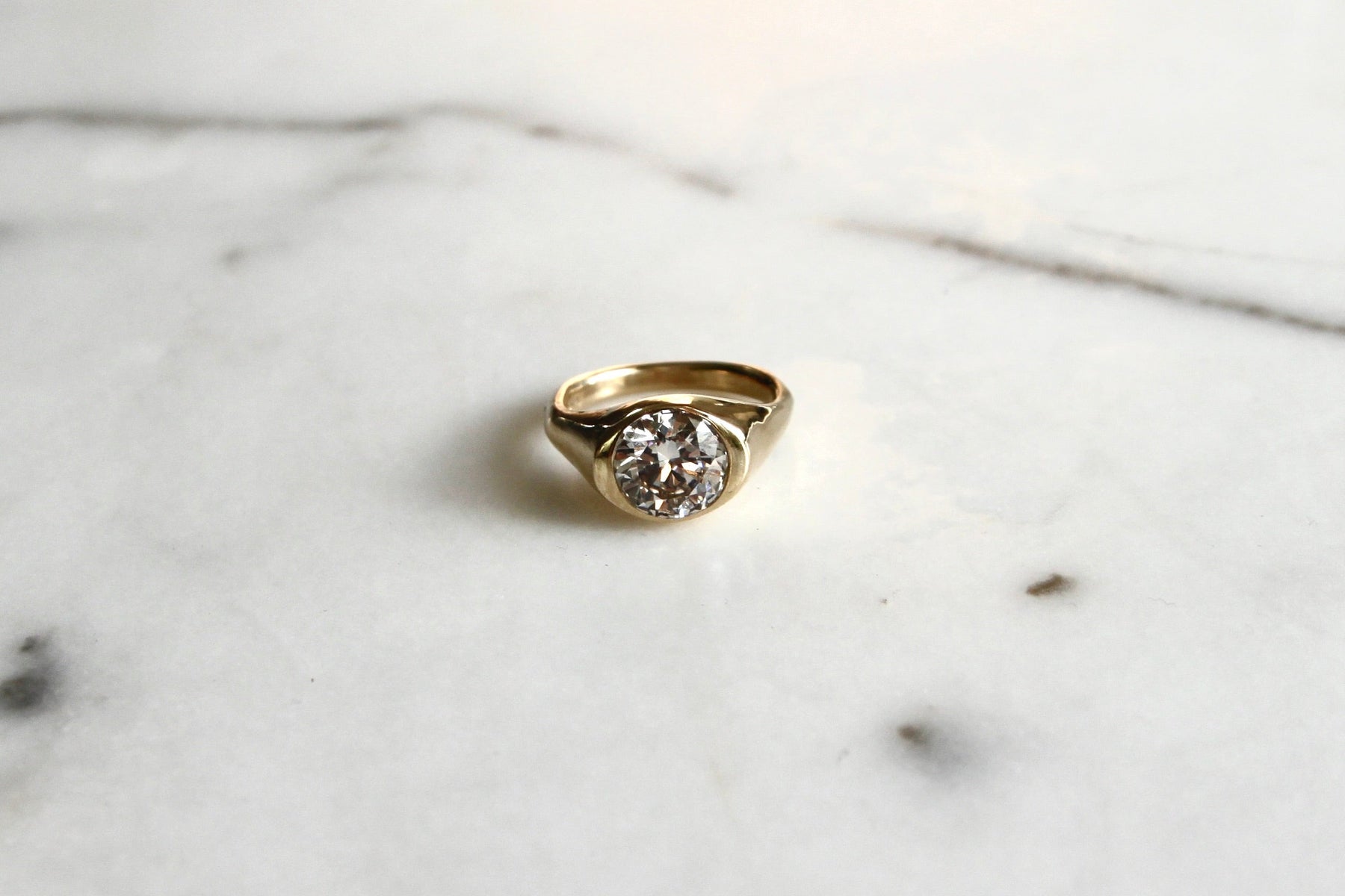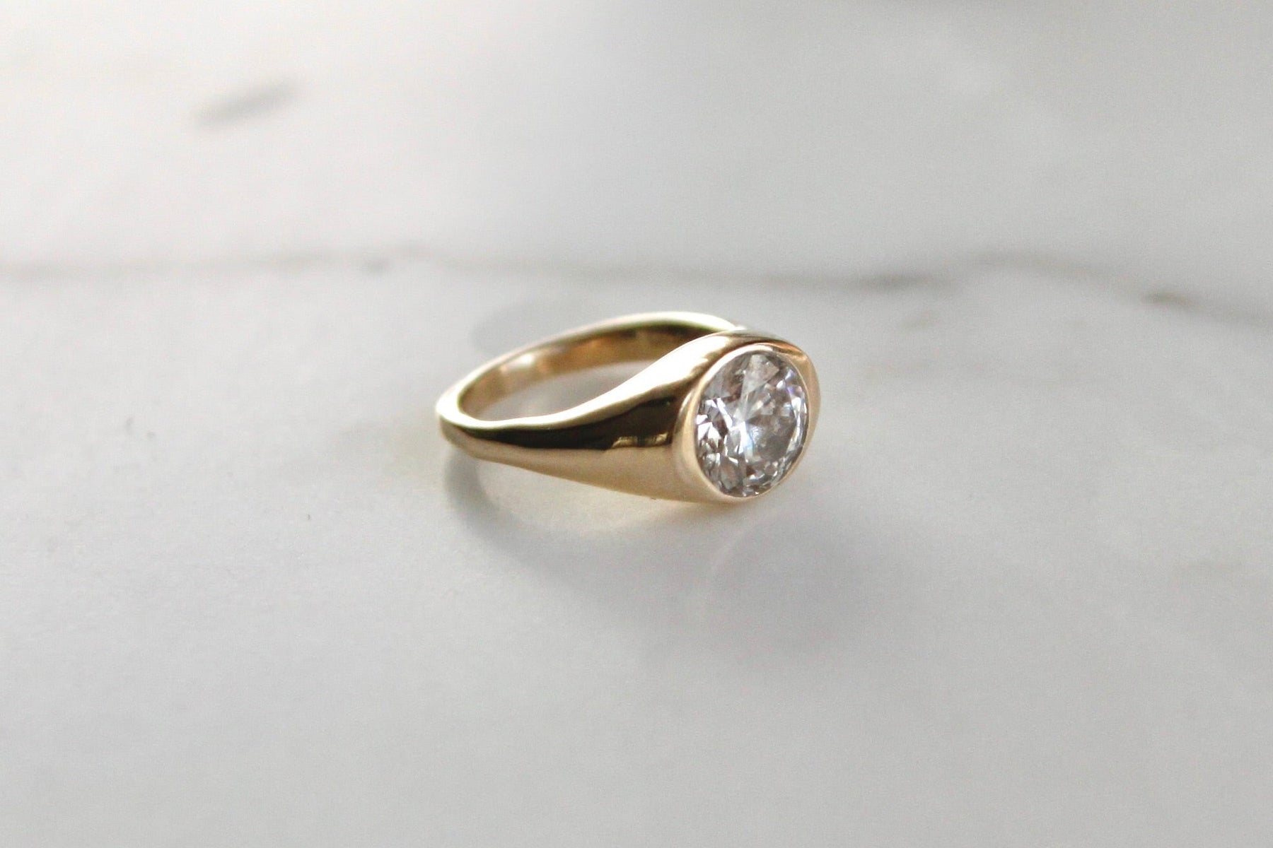 Large solitaire 2.78ct lab-grown diamond beautifully flush set in a signet ring style band.